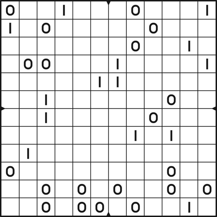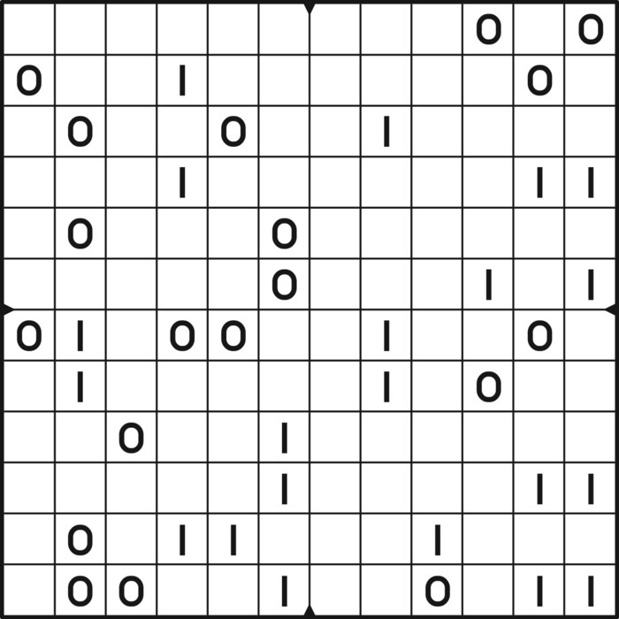 A daily binairo puzzle! Solve each puzzle with only 0's and 1's. Remember: No more than two the same numbers may be placed directly next to or below each other. Every row and every column must contain as many zeroes as ones. The combination of zeroes and ones in every row must be unique, as does the combination in each column.